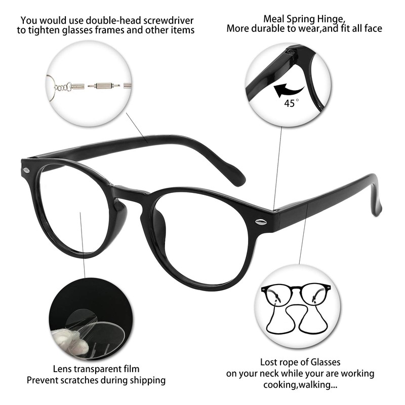 - Great of value :1 reading glasses.2 the portable spectacle bag and soft glasses cloth, 3 protective cover and lens protection film that avoid scratches during the shipping 4.black glasses rope which can be hung around your neck to avoid losing it during cooking, shopping, walking and fishing 5 doule-head screwdriver, you tighten glasses frame.100% replacement or refund service, if any damage occurs to the product, please contact OCCI CHIARI team to solve the problem quickly and effectively.