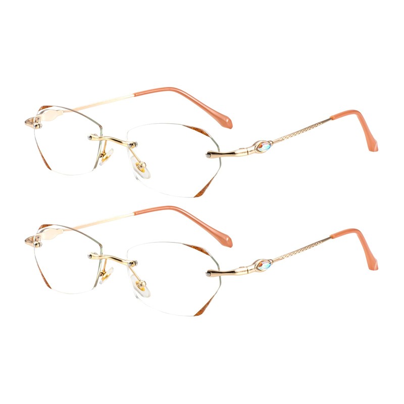 - Chic design&Rimless lightweight:metal legs with diamond ,chic and stylish,Rimless design(only 21g), and silicone nose pads, you would feel confort to wear full day,can adapt to women with small face, durable for long-term use,The nose pad fit the bridge of the nose, preventing glasses from slipping and imprinting the skin.The nose pad is designed to make the glasses likely to fall off when you are looking down or exercising Classic rectangular rimless frame design