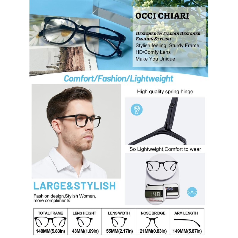 OCCI CHIARI Transition Bifocal Reading Glasses for Men XL Blue Light Blocking Readers 2.5x(100 150 200 250 300 350)