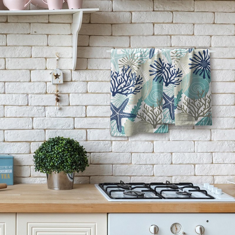 - 【High Quality】The coastal kitchen towels made by polyester microfiber front, white premium cotton back, luxury super soft, lightweight, highly absorbent and quick-dry. Tightly stitched at the edge, as long as you don’t pull, tear, or scrub too much, it won't fall off so easily. The production process does not add any harmful substances, so you can enjoy hassle-free cleaning without any risk of damaging your skin.