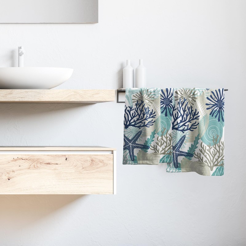 - 【2 Piece Towel Set】The size of the blue coral towel set is 14.4x28.3in(36cmX72cm), 2 piece of hand towel set, is designed to provide users with all their basic bathroom drying needs such as wrap around hair or to dry hand. With bright colors and exquisite patterns, it is an excellent decorative towel for the bathroom. Suitable for men and women, and the perfect size makes them easier to store.