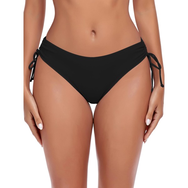Ocean Blues Women's Black Sides Drawstring Full Coverage Bikini Bottom Size Medium