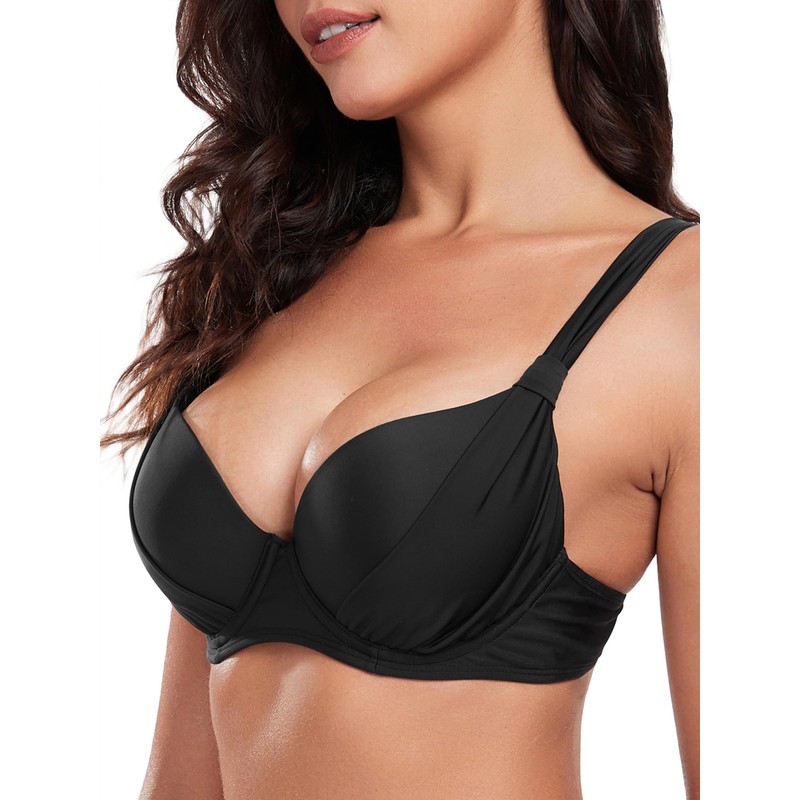 Ocean Blues Women's Black Underwire Bikini Tops Retro Push Up Bathing Suit Top Size X-Large
