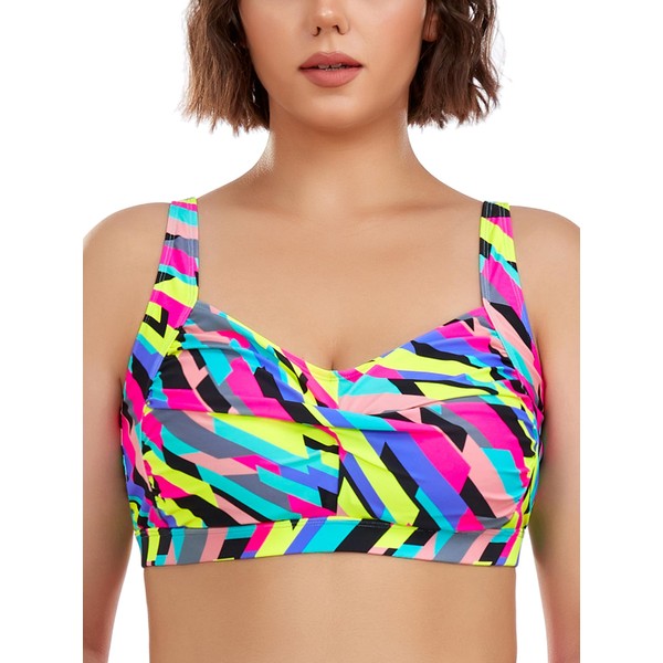 Ocean Blues Women's Neon Striped Plus Size Bikini Top Twist Front Molded Bathing Suit Top Size Large