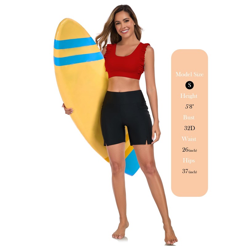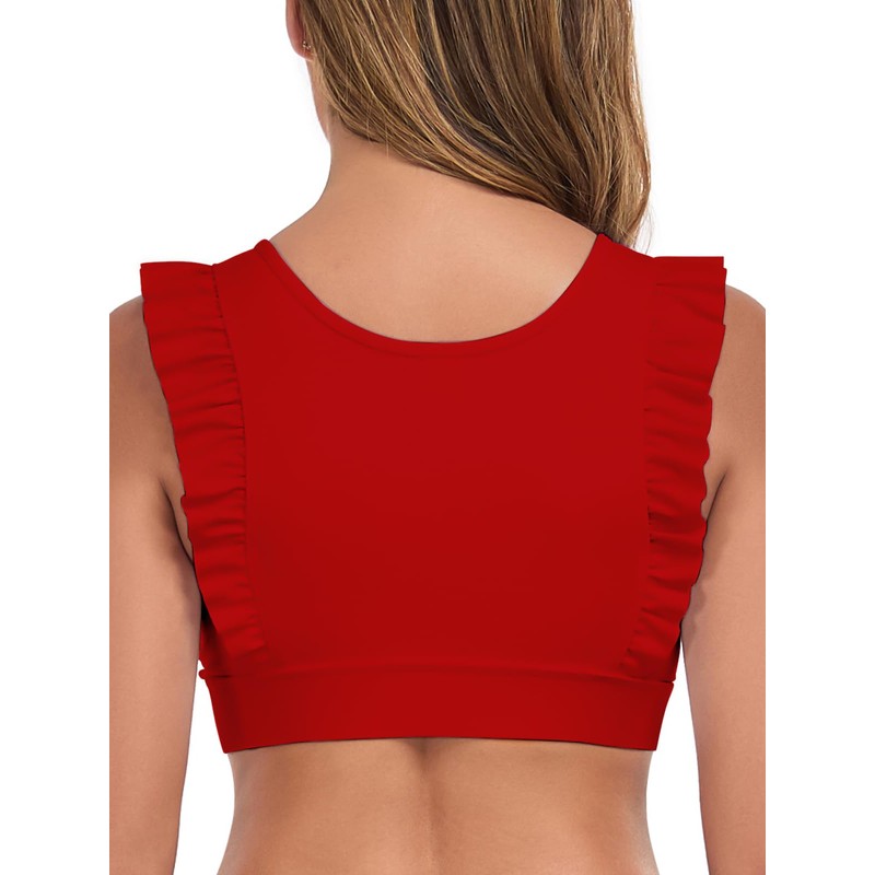 Ocean Blues Women's Red Ruffle Bikini Top Supportive Bikini Top Longline Swim...