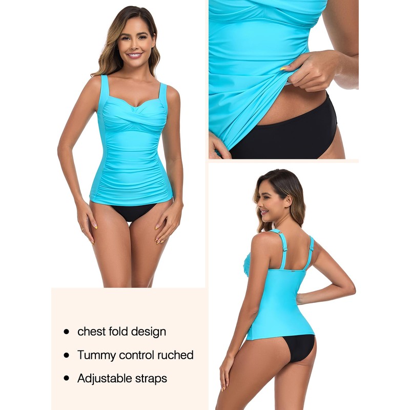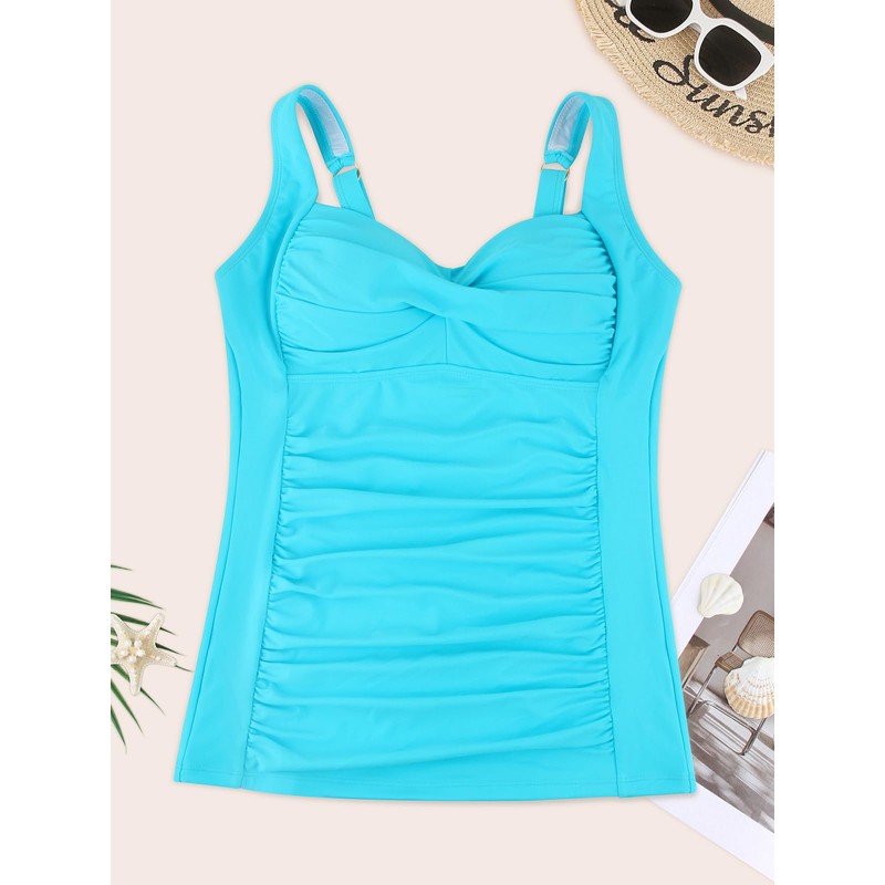 Ocean Blues Women's Sky Blue Tummy Control Tankini Top with Twist Front Wire-Free Molded Cups Swim Top Size X-Large