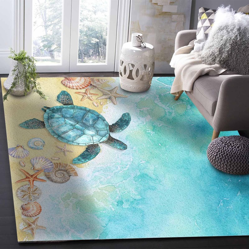 Ocean Indoor Area Rug, Beach Waves Turtle Shell Conch Soft Non-Shedding Carpet Floor Mats, Rubber Backing Washable Throw Rug for Living Room Bedroom, 2' x 3'