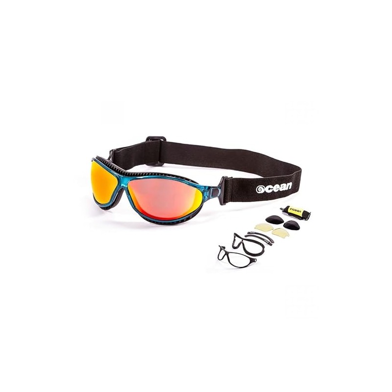 Ocean OCN-12201-6 Floating Sunglasses, Goggle Shape, UV Protection, Impact Resistant Coated Lens, Recycled Material, Clear Blue (Polarized Red REVO Lenses)