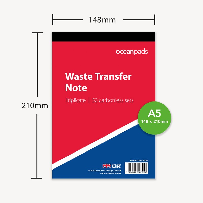 Ocean Pads Waste Transfer Note A5 50 Sets Book 3-Part Carbonless Paper (70055)