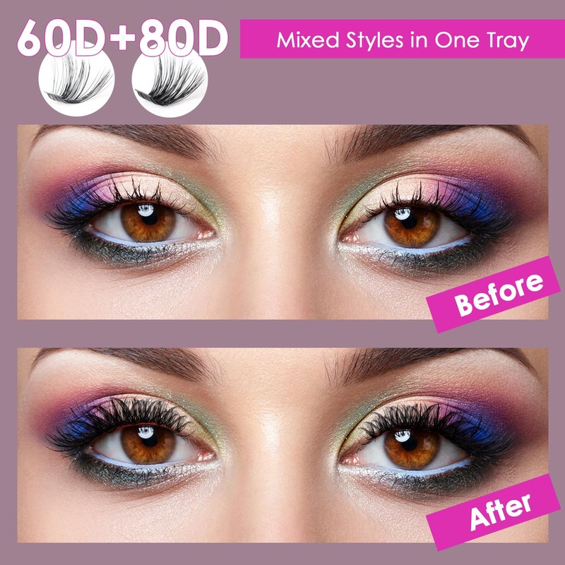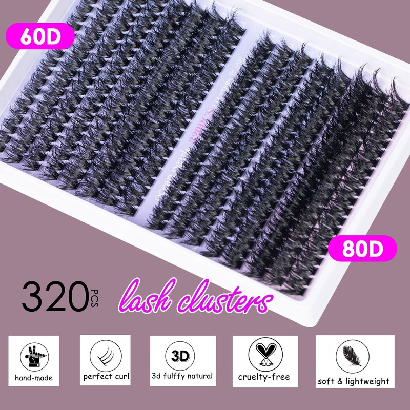 3D Thick Lash Extension Kit 320 Pcs Fluffy Lash Clusters 60D+80D 10-16mm Eyelash Extension Kit Individual Lashes with Bond and Seal Glue Tweezers DIY Eyelash Extensions for Beginners (60D+80D)