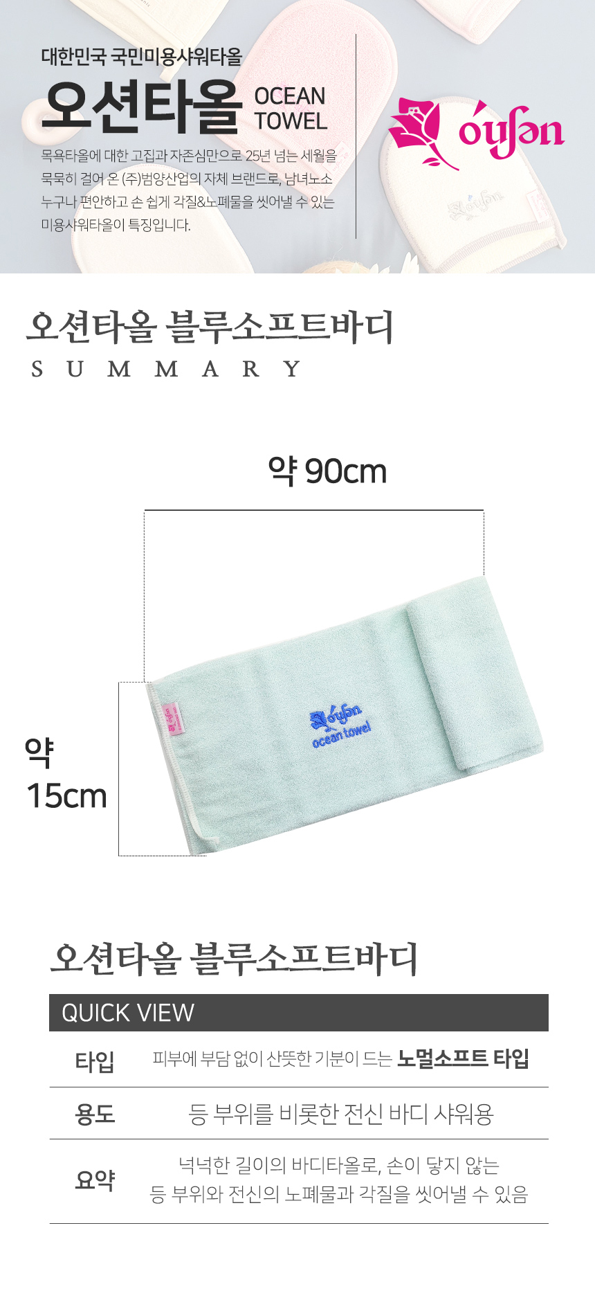 Ocean Towel Blue Soft Body, 1 piece / 오션타올 블루소프트바디, 1장