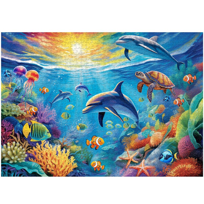 Ocean World Puzzles for Adults 1000 Pieces, Sea Turtle Dolphins Underwater World Jigsaw Puzzles, Undersea Animal Puzzle as Ocean Landscape Art