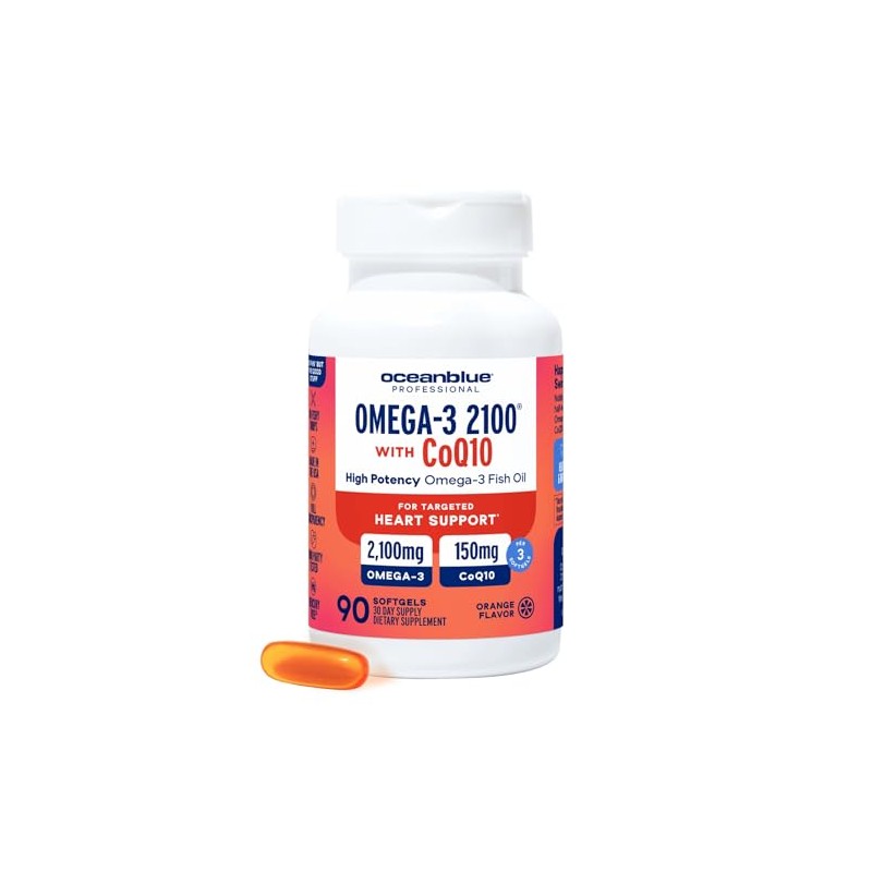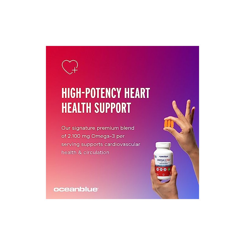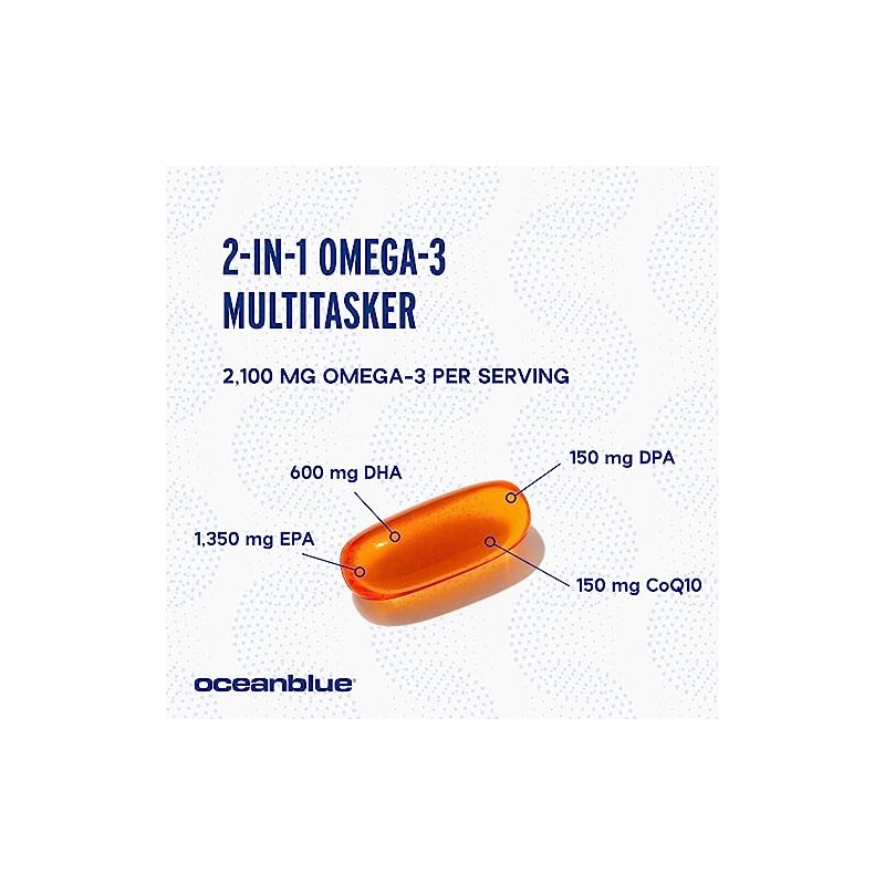 Oceanblue Omega-3 2100 con CoQ10 90 ct Suplemento de aceite de pescado sin arbustos de triple resistencia con alta potencia EPA, DHA, DPA y CoQ10...
