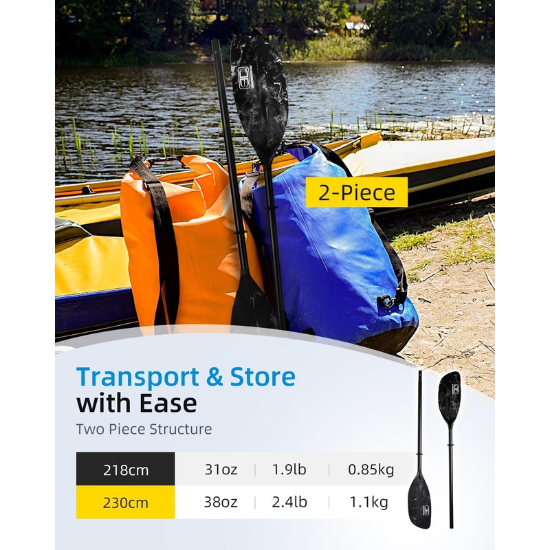 • 【Portable & Lightweight】The kayak paddle shaft is detachable at 2 sections, for easy carrying and space-saving storage.It's your ideal travel buddy for every outdoor expedition!