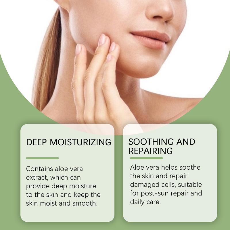 Our Aloe Vera Gel contains Propylene Glycol and Carbomer. It soothes and repairs damaged skin cells, making it ideal for both daily care and post-treatment skin recovery. Easy to use: Apply evenly to your face in the morning or daytime, gently massaging into the skin. At night, use it as a moisturizing mask, leaving it on to absorb. This gel provides deep hydration, keeping your skin smooth, soft, and refreshed.
