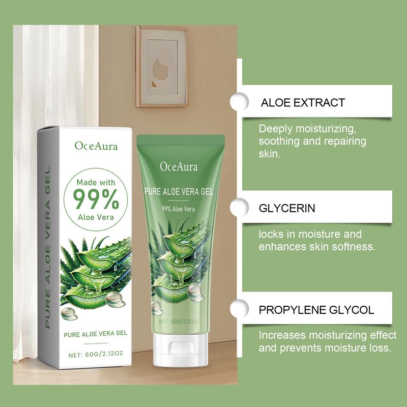 OceAura Aloe Vera Gel - Hydrating & Moisturizing Face Gel for Acne-Prone Skin, Sunburn Relief & Soothing Skin Care Cream Moisturizer Daily Aloevera Moisture Hydrate Comfort