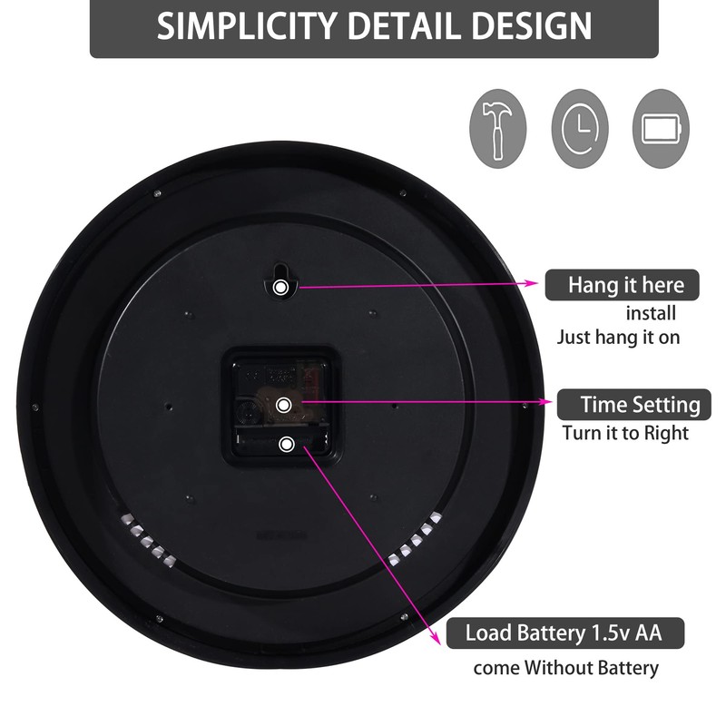 - 【PERFECT WALL DECORATION】The right size, classic color and circular design of the wall clock is the must-have accessory for any room. Wall clocks battery operated is the perfect wall decoration for living room, bedroom, kitchen, office, study, meeting room, classroom.
