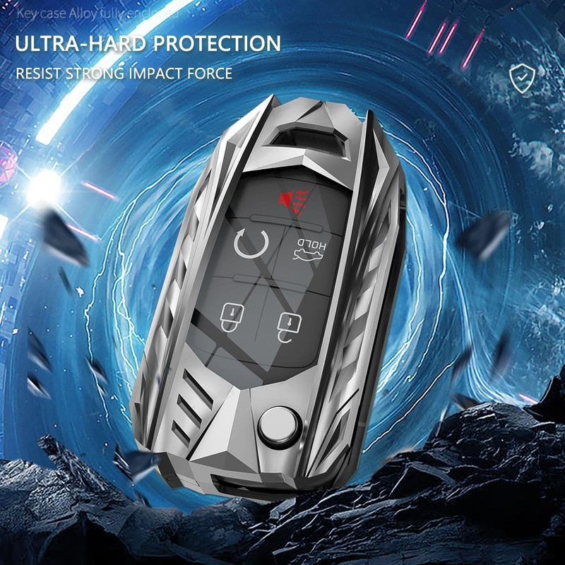 Ocezbiis For Chevy Key Fob Cover,Keychain,Zinc Alloy Protection Car Key Shell Case Compatible with Buick GMC Series Keys with Eject/fold Entry Keyshell Accessories(Style C Silver)