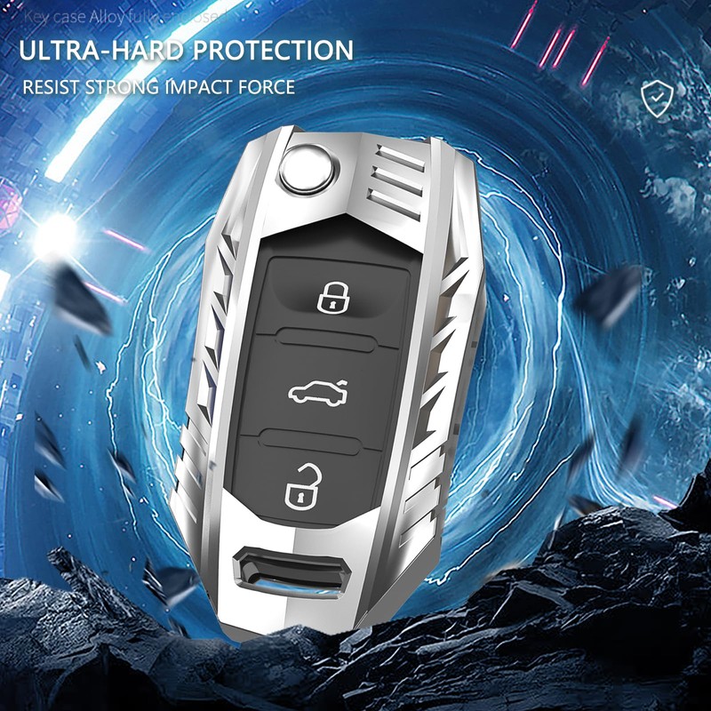 Ocezbiis for Volkswagen Key Fob Cover,Keychain,Zinc Alloy Protection Car Key Shell Case Compatible with VW Holder Smart Remote Keyless Keyshell Accessories(for VW Style A Silver)