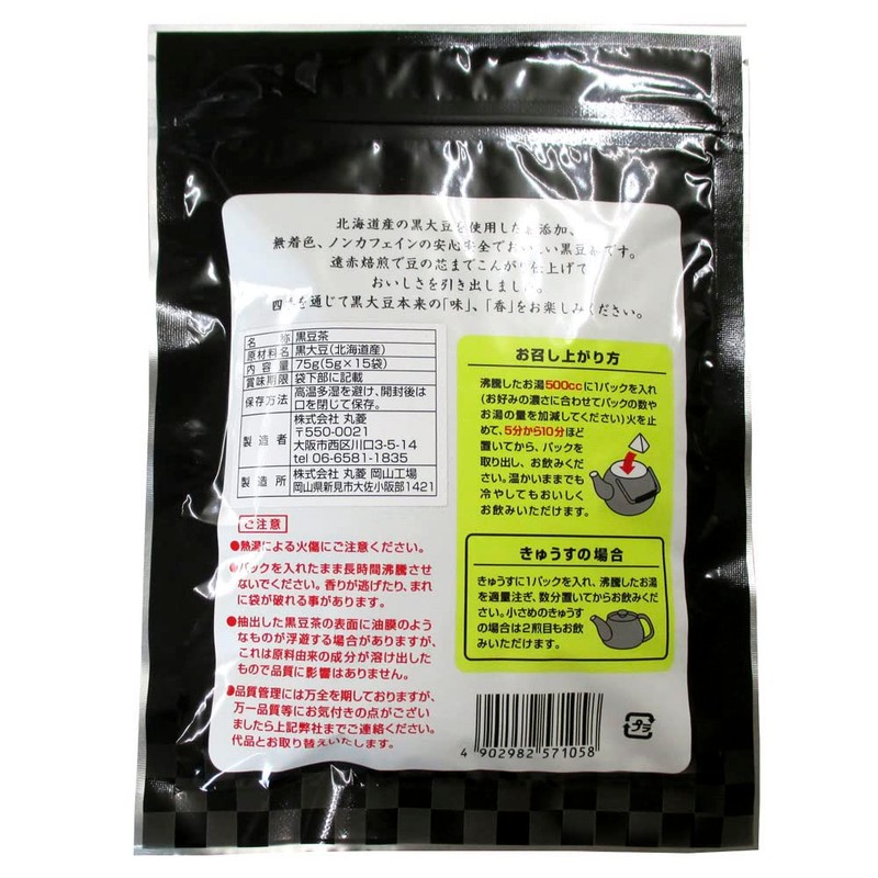 Ocha no Maruko Marubishi Caffeinated Black Bean Tea Produced in Hokkaido (0.2 oz (5 g) x 15 P), 5 Packs