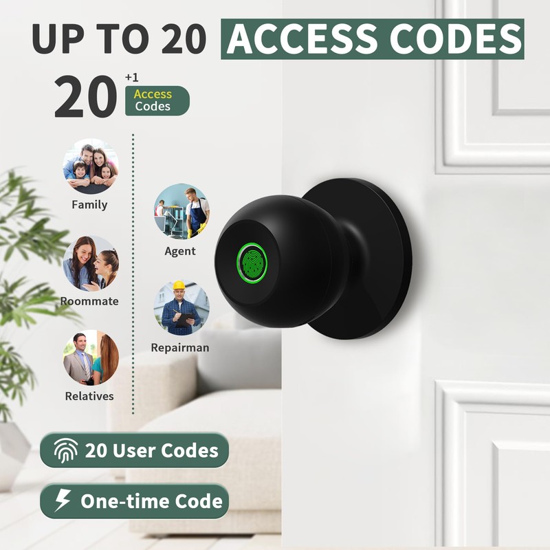 - 3-IN-1 Unlock Way: OCINONE smart door knob has 3 unlock ways, fingerprint unlock, App control, emergency back-up keys. Biometric fingerprint door knob recognizes your fingerprint in just 0.3s. It's a perfect to get keyless entry door lock.