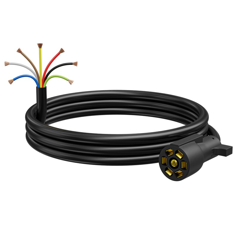 - Hoja de cobre de 7 vías de 4 pies moldeada en un enchufe resistente, proporciona una manera rápida y simplificada de conexión de cables, así como mantener todo el cableado de tu remolque en orden.