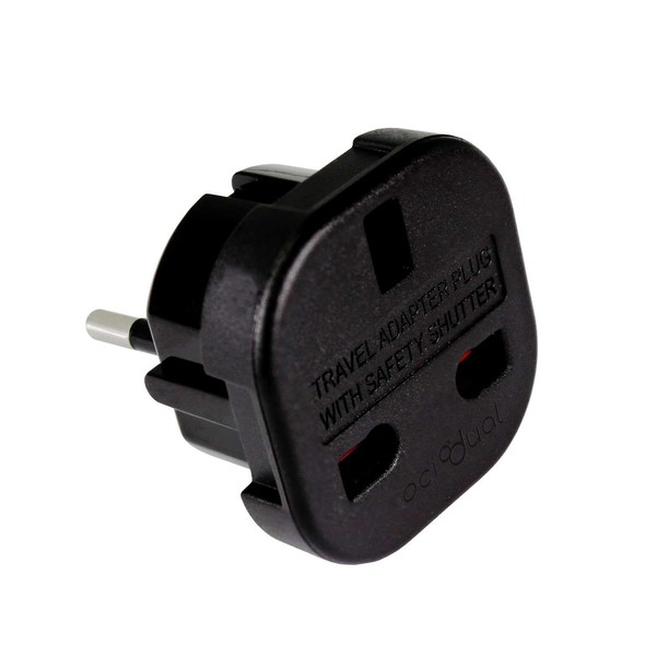 OcioDual UK to European Plug Adapter, Travel Plug Adapter, Type G to Type E and F Plug, Model YD-9625, 221V/13A Black, 3-Pin to 2-Pin Converter, CE/RoHS Certification