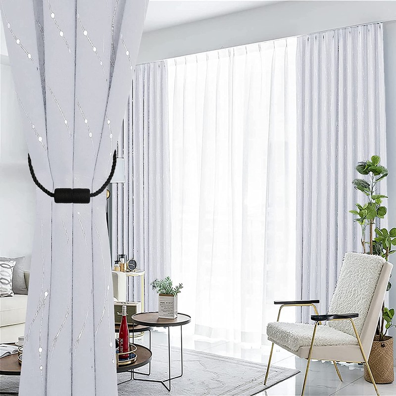 OCIOLI 2 Pack Magnetic Curtain Tiebacks Curtain Holdbacks Curtain Ties Outdoor Curtain Tiebacks Modern Rope Tiebacks Drapery Holdbacks Tie Backs for Curtains (Black, 2)