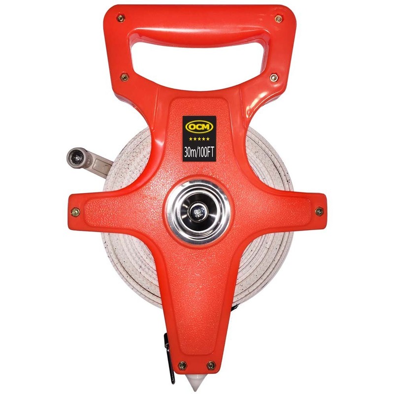 OCM Open Reel Fiberglass Tape Measure Inch Metric Scale, Impact Resistant ABS -100 Feet, 30 Meter