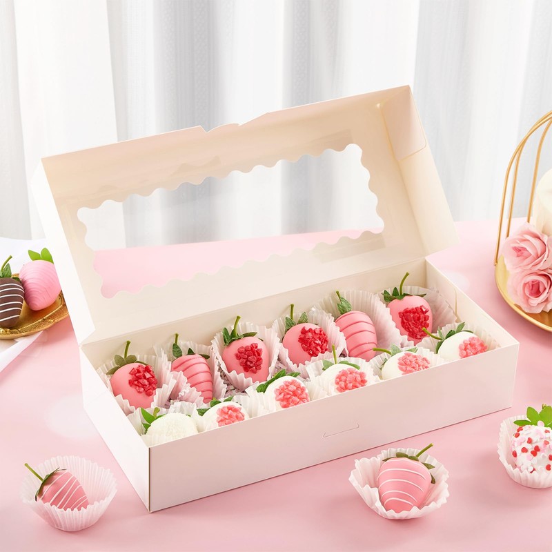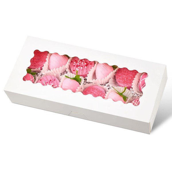 Ocmoiy 12.5 x 5.5 x 2.5 Inch Bakery Boxes, 20 Pack Auto-Popup Cookie Boxes with Window, White Treat Boxes for Chocolate Covered Strawberries, Cocoa Bombs, Donuts, Muffins, Pastries