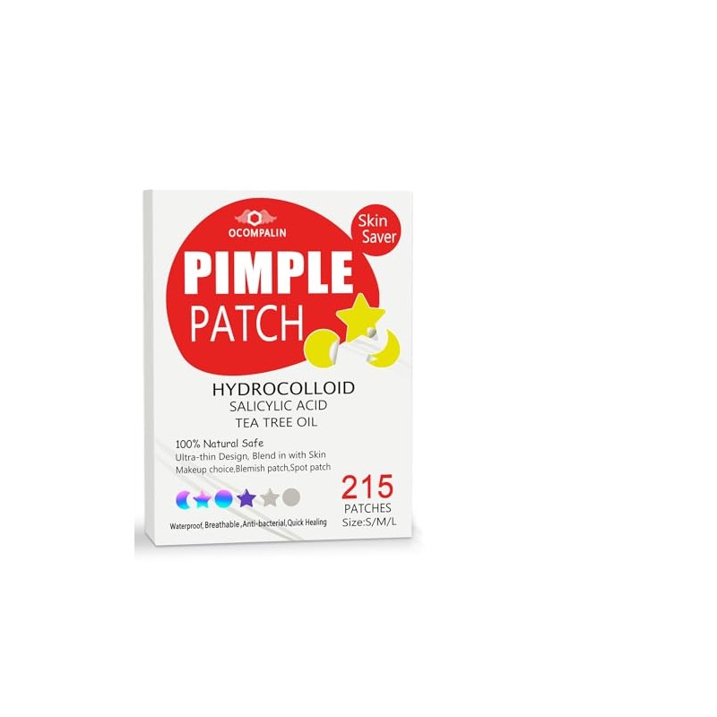 OCOMPALIN 215 Count Pimple Patches,Natural Hydrocolloid Acne Patches with Tea Tree,Salicylic Acid & Centella Oil,Bling 4 Shapes Acne Stickers,Acne Dots for Zits,Spot Sticker (Bling(Pack of 215))