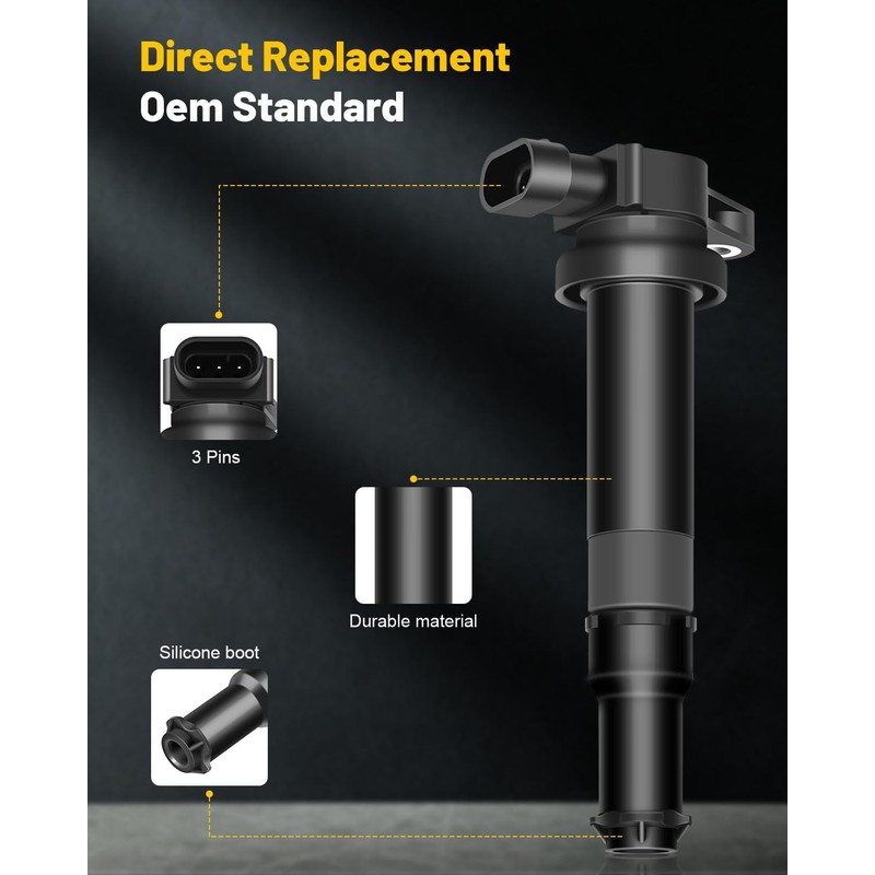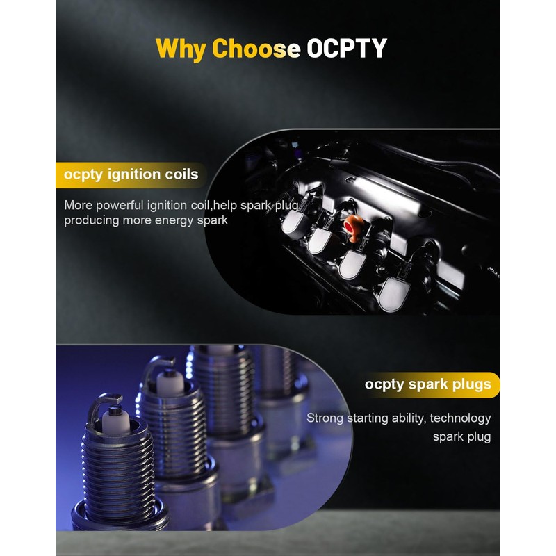 • Function & OEM Fit:OCPTY Ignition Coils are engineered for original equipment and replacement applications.Every component either matches or improves on the OE design to ensure fast and easy installation with superior performance and reliability.The ignition coil acts like a transformer.the ignition coil transforms the electrical energy from the vehicle battery into high voltage, saves it briefly and then emits it as a high voltage current pulse to the spark plug