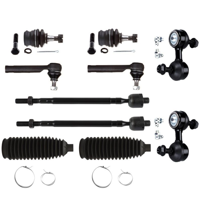 - [SUSPENSION KIT CONTAINS] 2PC X K9513 Front Lower Ball Joint, 2PC X ES3712 Front Outer Tie Rod End, 2PC X EV800513 Front Inner Tie Rod End, 2PC X K750049 Front Sway Bar End Link, 2 x Front Steering Rack Boot