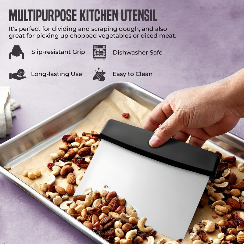 - Durable Design: Crafted with a high-quality stainless steel blade and a sturdy black plastic handle, this dough cutter and bench scraper is designed for long-lasting use, delivering a comfortable and efficient cooking experience.