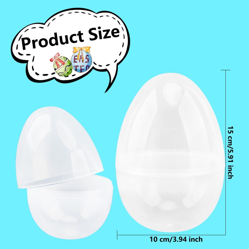- 【Size Detail】: Each jumbo Easter egg measures 15 cm/ 6 inches in height and 10 cm/ 4 inches length in width, providing ample space to fill with stuffed toys, chicken, bunny, candy, or surprises. These eggs offer plenty of room to create a memorable and exciting Easter experience for kids and adluts
