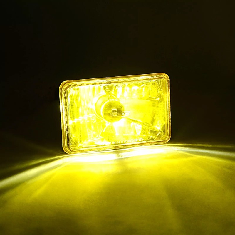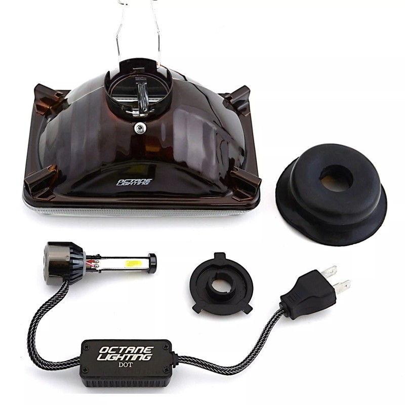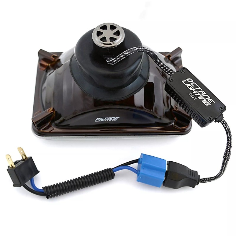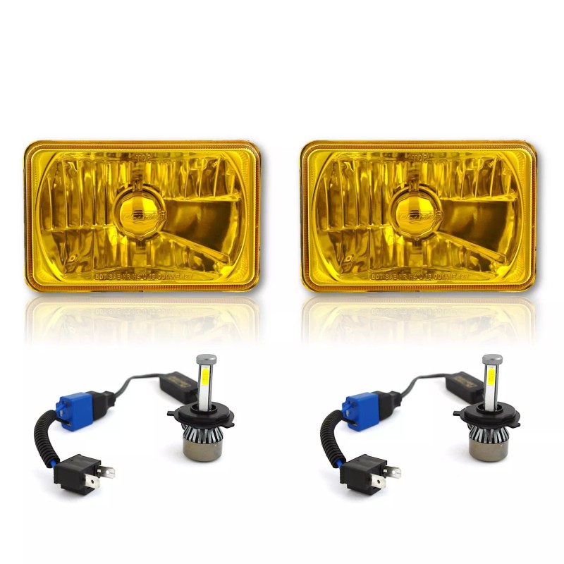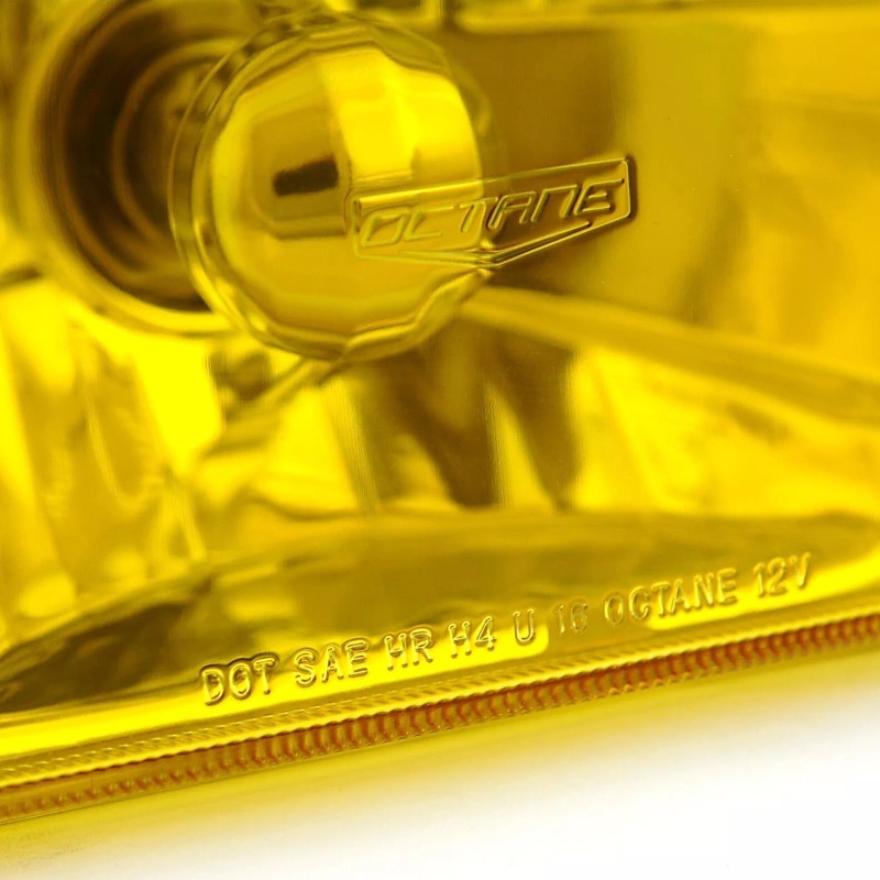 OCTANE LIGHTING 4X6" LED Crystal Yellow Glass Metal Headlight 4000Lm H4 Light Bulb Headlamp Pair