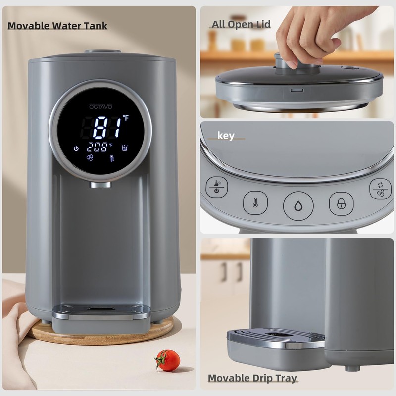 - Stainless Steel Water Tank - Crafted with an emphasis on practicality and comfort, OCTAVO electric hot water pot features an independent detachable lid design. Water addition and cleaning are no longer tedious tasks.