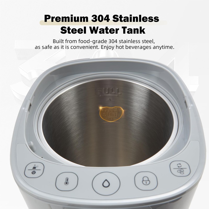 - Pure Water with Dechlorination and Reboiling - Not just any water boiler, this hot water dispenser guarantees safe consumption by effectively removing chlorine during the boiling process. With a unique dechlorination and reboiling feature, it ensures that every sip you take is of pure, safe water, elevating the standard of water boilers and warmers.