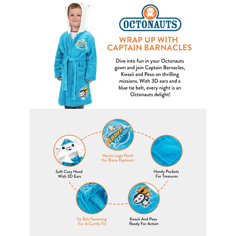 - This blue robe has an octonaut badge on the chest, two spacious pockets and a waist tie