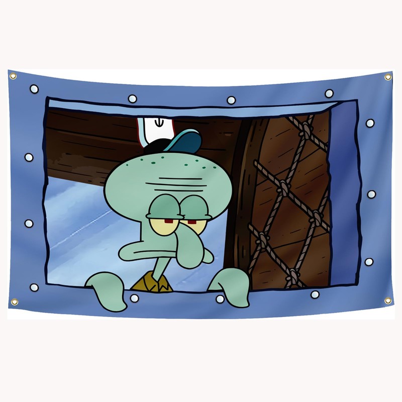 Octopus Cartoon Flag 3x5Feet Funny Meme Banner Wall Hanging Tapestries for College Dorm Room Decoration