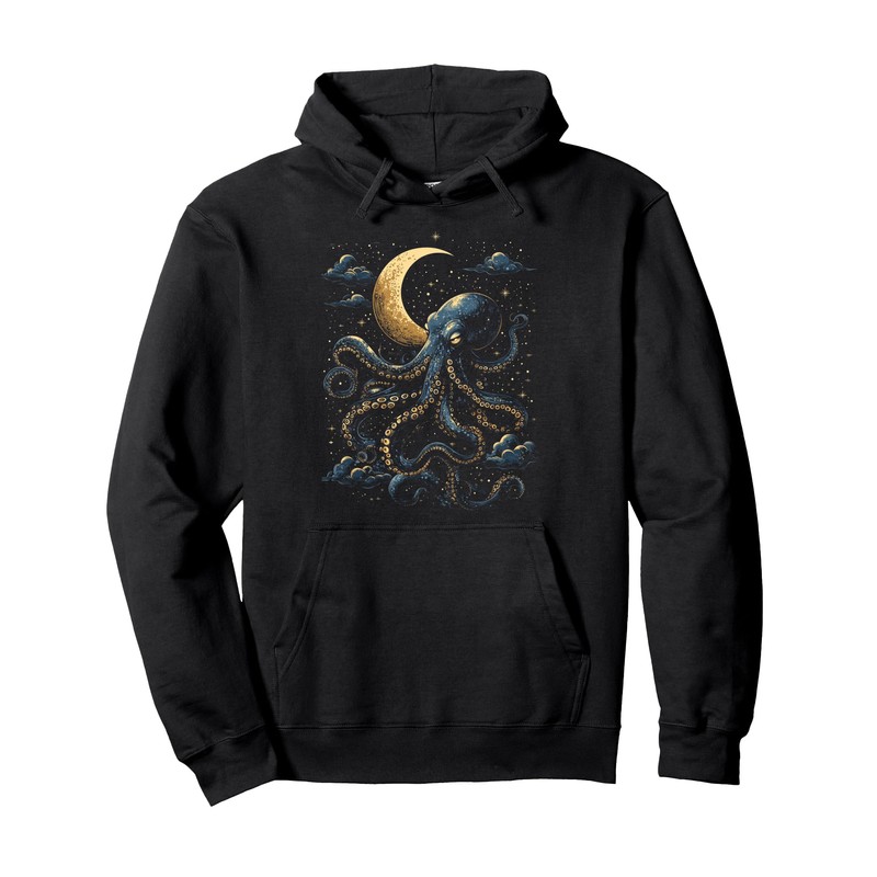Octopus Celestial Moon Dark Academia Moody Maximalist Ocean Pullover Hoodie
