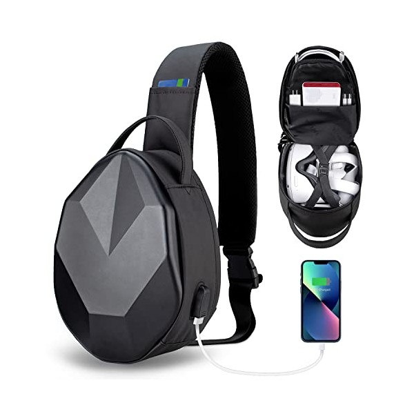 - ✔USB CHARGING PORT: Oculus quest 2 charging case with built in USB charger outside and built in charging cable inside, this usb crossbody bag offers you a more convenient way to charge the Oculus Quest 2 and your phone on the go (Power bank is NOT included!). The Oculus case also can be a fashion sling bag for daily use. It's a great gift for friends, lover and families