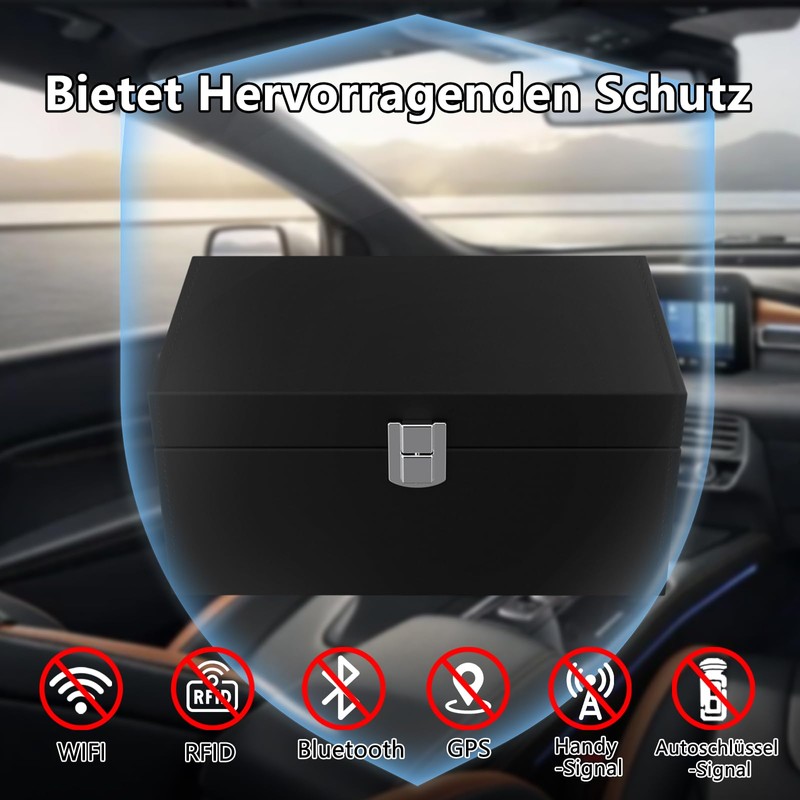 - Meets multiple safety requirements: the Keyless Go protection box has been developed with double shielding in industrial quality and a conductive sealing system and works with car remote controls and key chains. It also blocks mobile phone signals, Bluetooth and WiFi signal connections, making it impossible for hackers to access them.