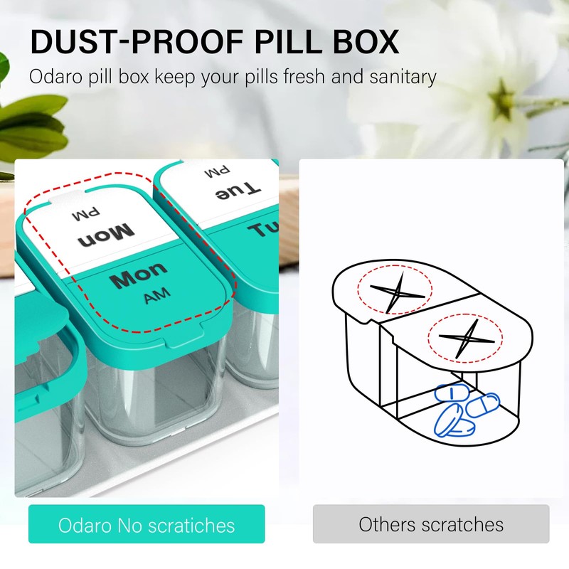 Odaro Odaro Extra Large Weekly Pill Organizer 2 Times A Day, Pill Box 7 Day A...