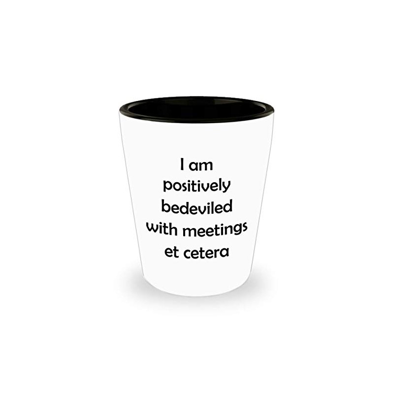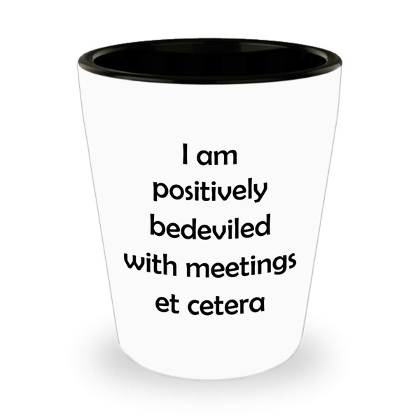 ODDITEES Funny Pop Culture Shot Glass I Am Positively Bedeviled With Meetings Et Cetera