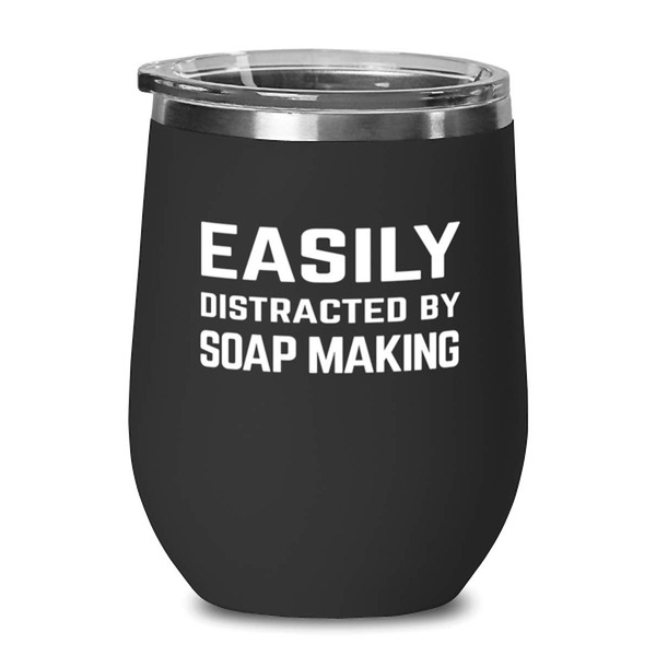 ODDITEES Funny Soap Maker Wine Tumbler Easily Distracted By Soap Making Wine Glass Stemless 12oz Stainless Steel Black