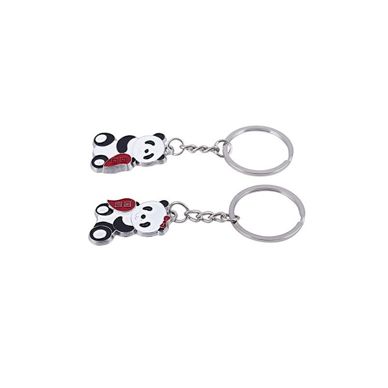 ODETOJOY 1 Pair Panda Pair Key Ring with Romantic Metal Silver Pandas Key Ring Set for Lovers Boys and Girls, black