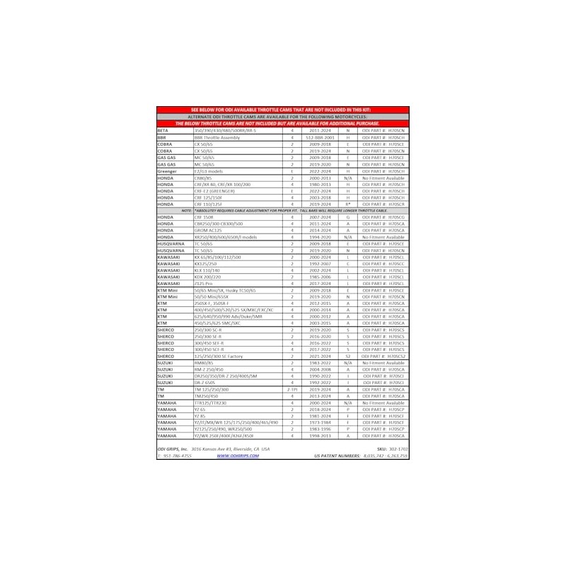 - WILL NOT FIT AN ATV OR ANYTHING WITHOUT A TWIST THROTTLE. ONLY FITS THE VEHICLES PICTURED ON THE FIT CHART, READ CAREFULLY SOME CAMS MUST BE PURCHASED SEPARATELY!