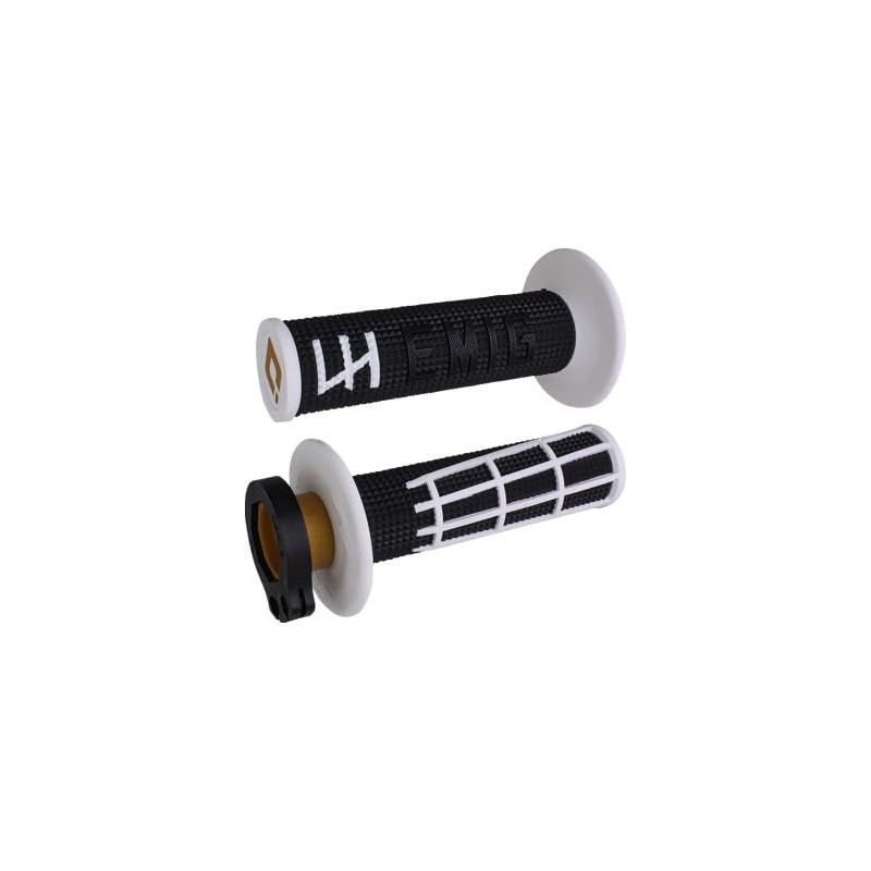 ODI Lock ON Emig 2.0 V2 Motorcycle Grips Dirtbike Offroad MX for 2 & 4 Stroke 7/8" Handlebars Twist Throttle Black/White USA Made