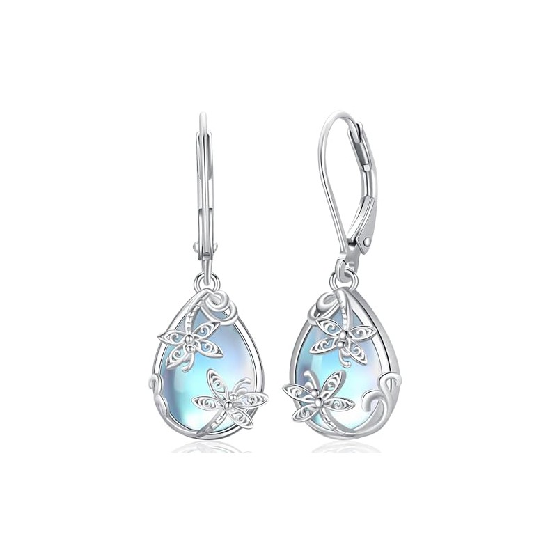 - Design: dragonfly represents beauty and freedom, which is adored by most them! Combining the graceful dragonfly design and moonstone, the silver dragonfly earrings are so gorgeous that you will receive many compliments for your high fashion taste!